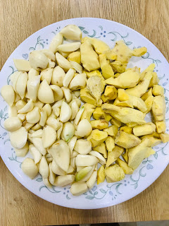 Start by getting the ginger and garlic ready…use close to equal amounts with slightly more garlic. Here is a sample.