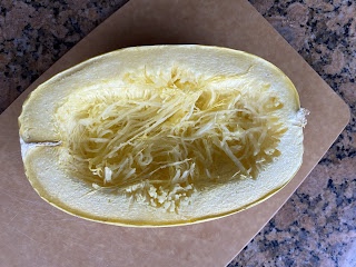 One of my best carb substitutions is the Spaghetti Squash. It has many nutritional benefits but I love it most because it is almost flavorless on its own and can blend well with whatever it is being paired with.