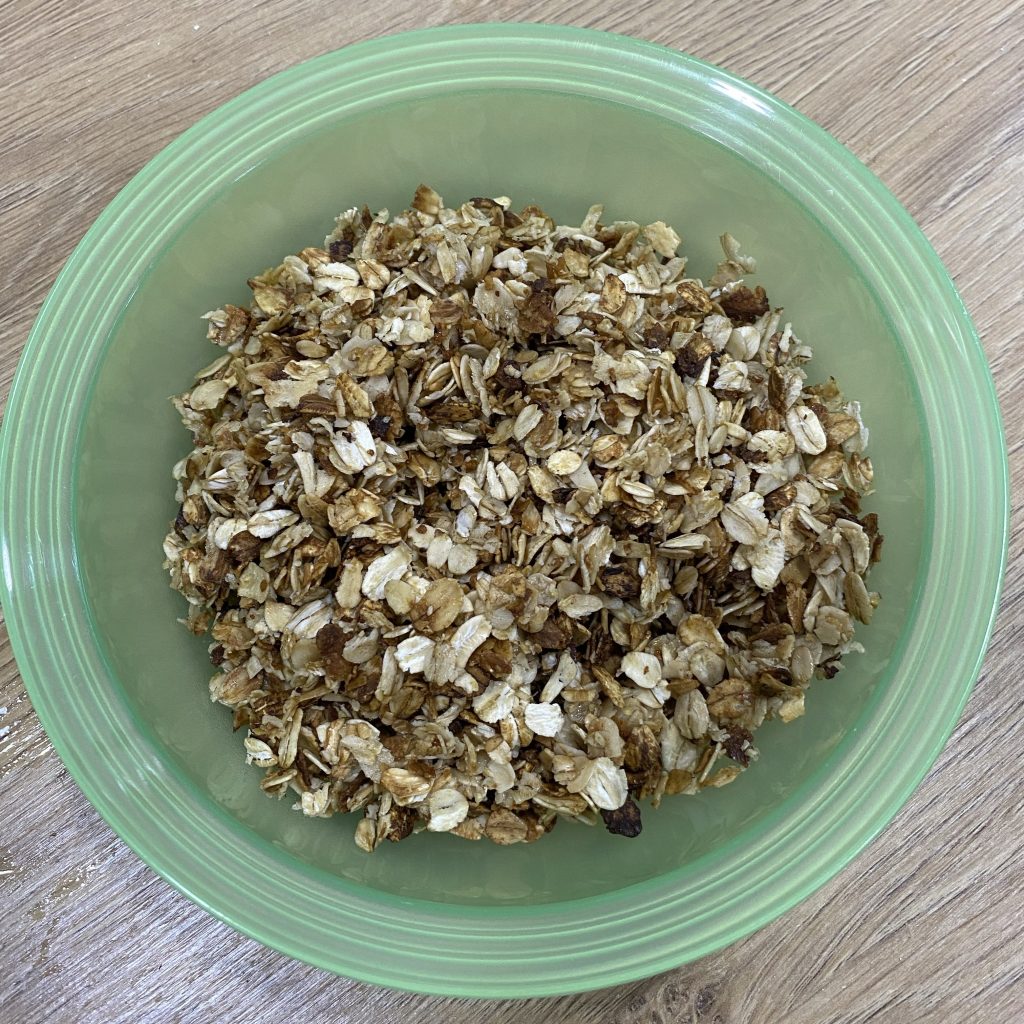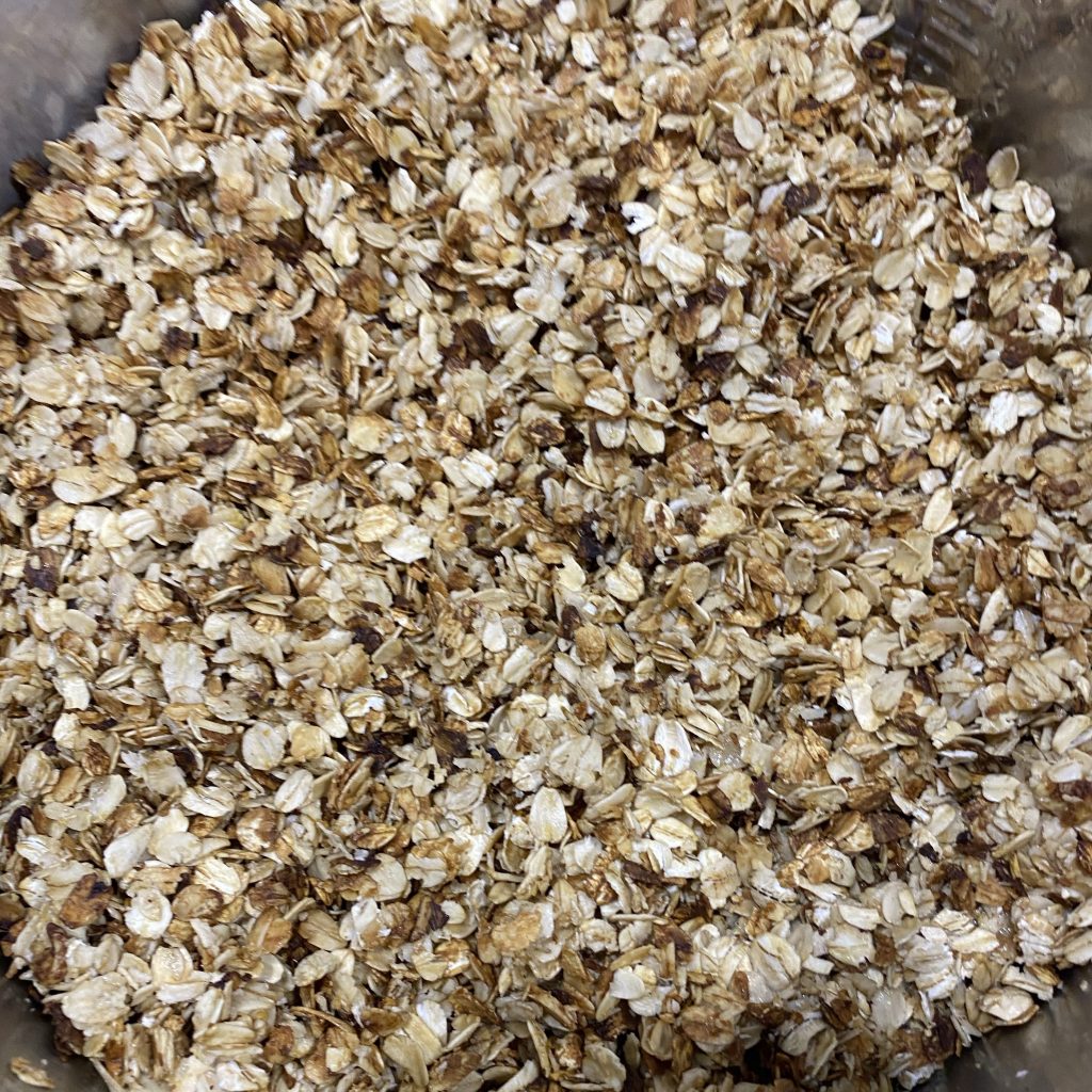 - Once the timer is up and it looks fully done, turn off the heat and let cool, stirring every so often so the granola doesn’t all stick together.