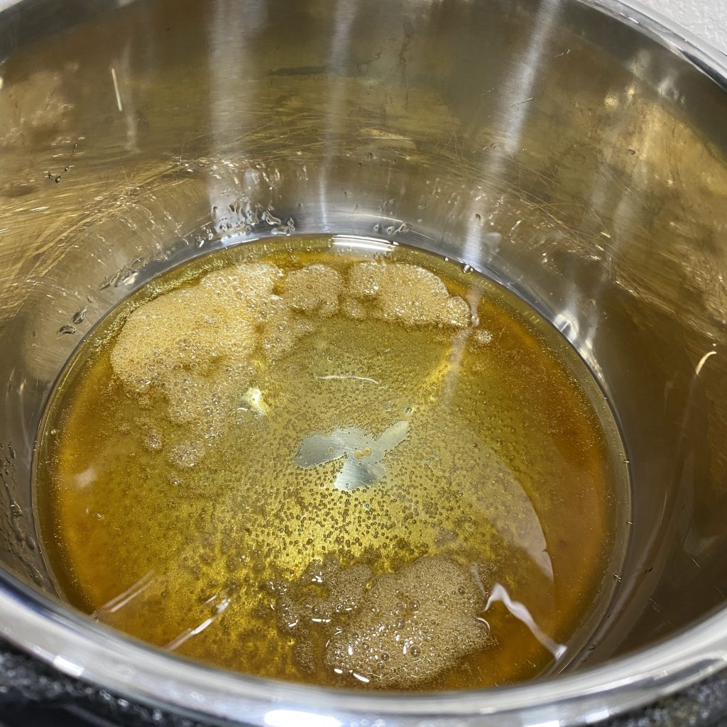 Tip: Use the half cup measuring cup to first measure the oil and then use the same cup to measure the honey and watch the honey just slide off into the pot without leaving any sticky residue!