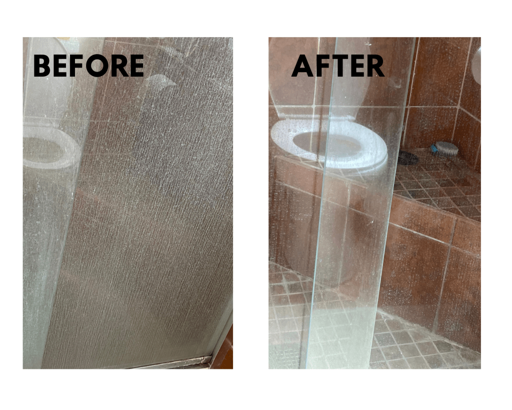 You will notice that the glass isn’t completely squeaky clean in my after picture but trust me, it took off at least 98% of the water scum. I am sure, one more application would have got it squeaky clean…maybe I’ll do that next week 😉