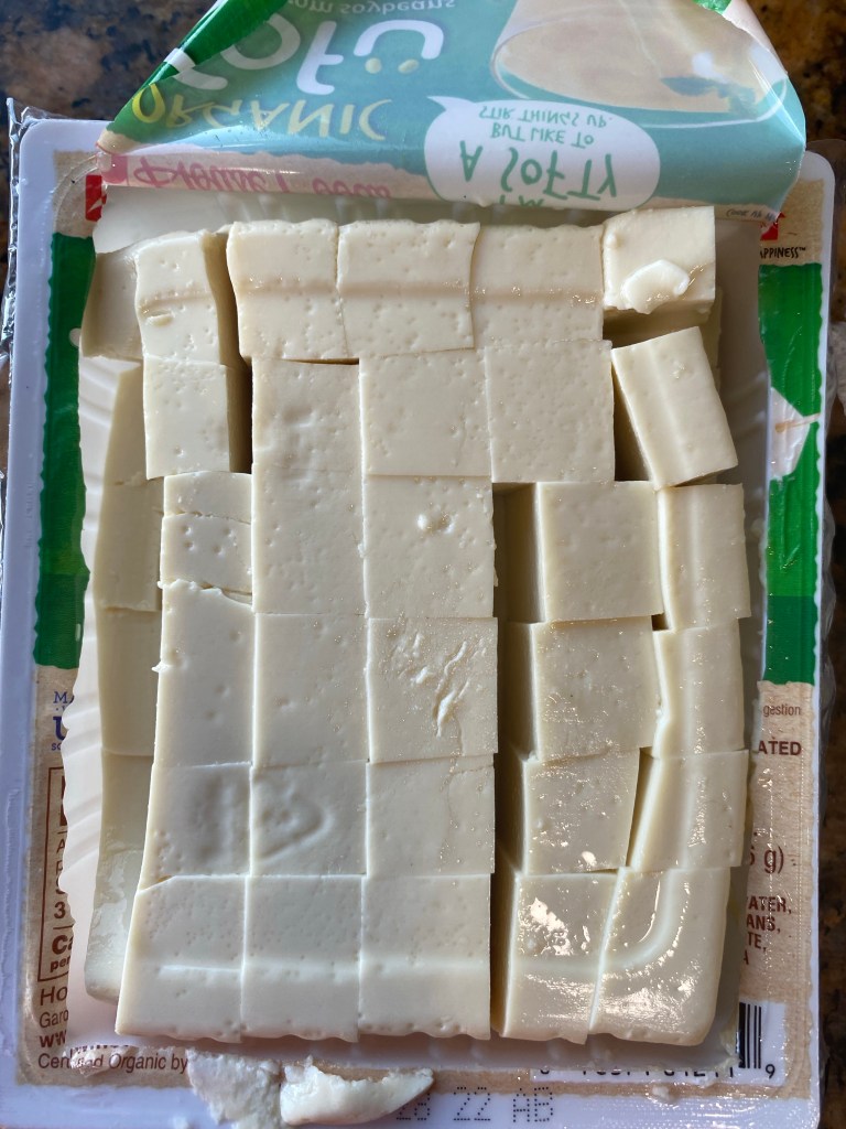 So today I am going to share a quick tip on how to cut up tofu using a minimalistic approach that that does not dirty any dishes except for the knife I use for cutting.